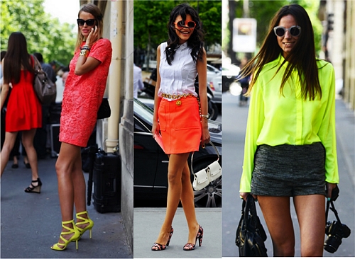 A principal tendência para os calçados são os bicolores. "Os sapatos aparecem em combinações super coloridas, como rosa e laranja, azul e amarelo, roxo e rosa, etc. Além disso, brilhos e tachas também marcam presença, assim como a transparência e o uso de materiais inusitados, como plástico".